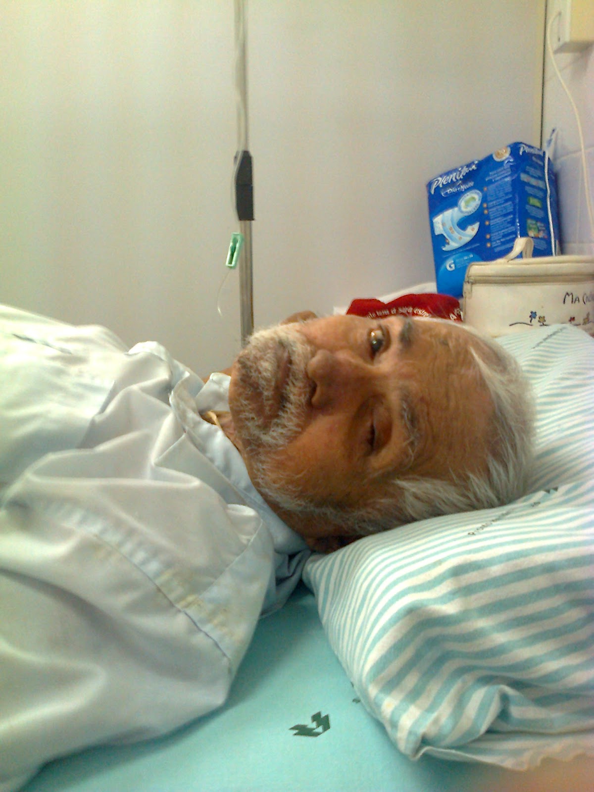 Ano passado, um dia antes do meu aniversário estava com ele internado e passamos a tarde juntos. Conversamos e disse a ele o quanto estava feliz por poder estar ali com ele. Não sabia eu, que seria a última vez! Era meu último aniversário com meu pai. O que seria motivo hoje para choro, vejo como felicidade! Um dos melhores momentos que passamos juntos. Ele estava bem e já íamos sair do hospital, então o ajudei a trocar sua roupa, porém esperávamos minha irmã para trazer a parte de baixo das roupas. Então brinquei com ele, dizendo-lhe que ia tirar uma foto e que ninguém ia ver a parte de baixo mesmo! (Ele estava de fralda) Foi aí que ele riu, muito!... Foi muito legal vê-lo sorrir. Para mim, o melhor presente! Dia 27 ele internou de novo...E dessa vez, não mais voltou. Hoje ele não está mais aqui, mas aquele momento de alegria, guardo na minha lembrança. Depois compreendi, havia chegado a hora dele! Ele era muito forte para as pessoas o verem de fraldas! Isso também me ensinou que não estaremos sempre vivos e juntos. Portanto, devemos viver a vida com intensidade porque amanhã o que ficará de verdade? As boas lembranças! Ainda bem que registrei com meu celular aquele momento!